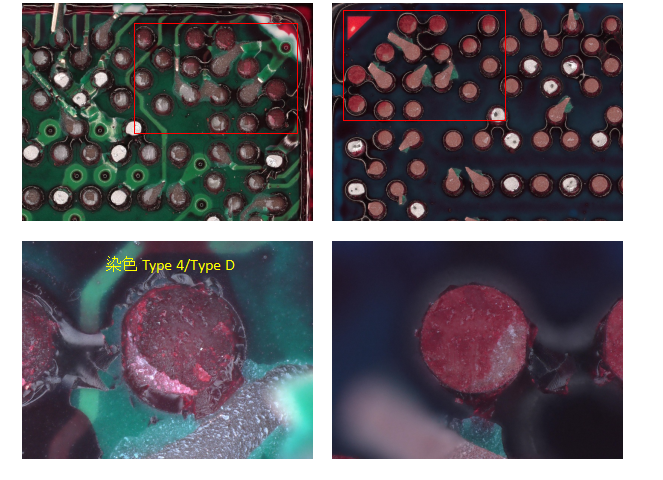 焊接过程中包裹的气体形成的空洞,如果空洞延伸到焊点表面或形成连通通道,染料也可能渗入。