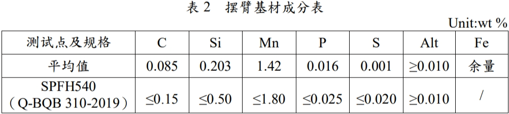 参照Q-BQB 310-2019标准,摆臂基材符合SPFH540规格要求。