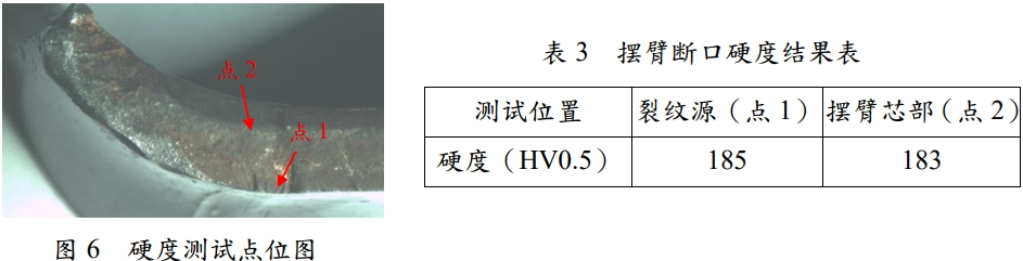 4.摆臂基材硬度、金相、夹杂物、化学成分等均无明显异常。