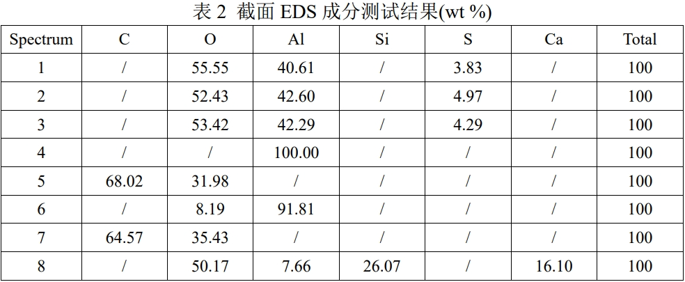 2.裂纹处及其附近正常区域均为阳极膜成分,推测裂纹中可能存在阳极膜;