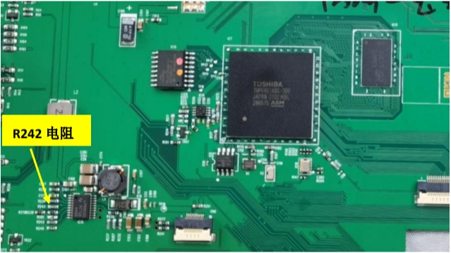 经客户排查为背光芯片的Fault线路异常,该线路正常电压为3.3V,不良品电压偏低。Fault线路一端连接背光芯片,经R242电阻后,连通MCU芯片。客户对失效产品与良品进行了交叉替换验证,发现不良跟随PCB走。