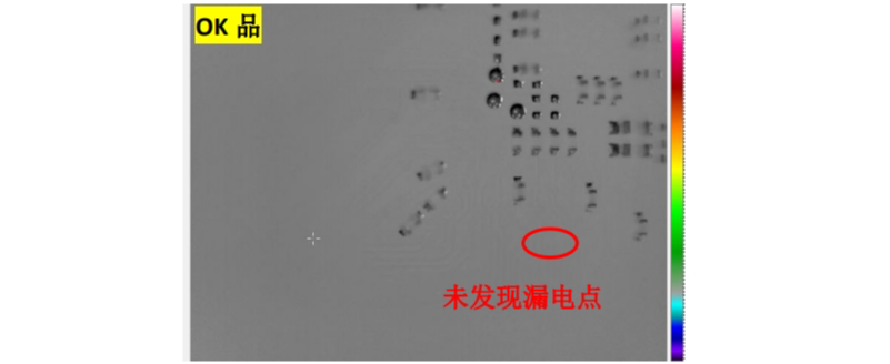 取NG1#,NG2#,NG3#,NG4#及OK品,给Fault线路单独通电(3.3V),用红外热发射显微镜检测后: