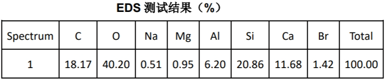 从切片结果可知,两孔间有疑似铜丝的存在,存在短路风险;但是EDS测试没有检测到铜元素。因为铜元素处于玻璃纤维缝隙中,玻璃纤维的阻挡作用,以及EDS检测厚度为1-2微米左右,导致较难检测到铜元素。