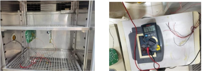 测试结果显示:此PCBA板对水汽及电压比较敏感,当嫌疑两孔间一直保持高温高湿及通电的状态,两孔间会发生微短路。