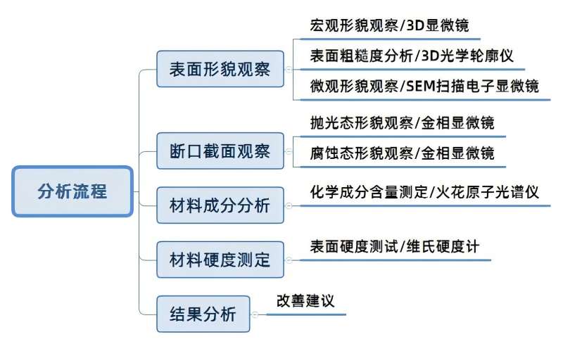 裂纹源位置存在明显的刀纹和缺损,表面有一定程度的氧化,但成分无异常。扩展区在断裂时磨损严重,可见少量疲劳辉纹。瞬断区则呈现出韧窝特征,表明为韧性断裂。