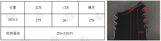 小结:以上所给硬度值均为三点测量结果之平均值;从硬度测量结果可以看出,螺栓芯部与表面硬度无明显差异;参照GB/T3098.1-2010,断裂螺栓的硬度符合8.8级高强螺栓规格要求。