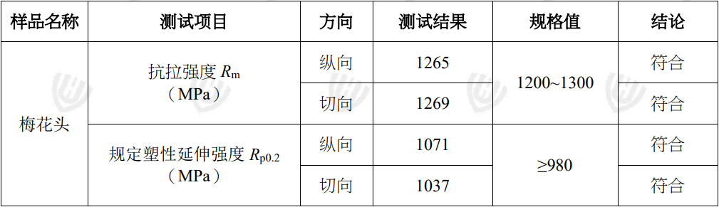 2.产品力学性能要求抗拉强度为(1200~1300)MPa、规定塑性延伸强度≥980MPa、断后伸长率≥12%、断面收缩率≥45%、晶粒度级别>6级;